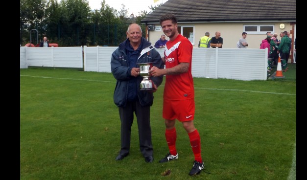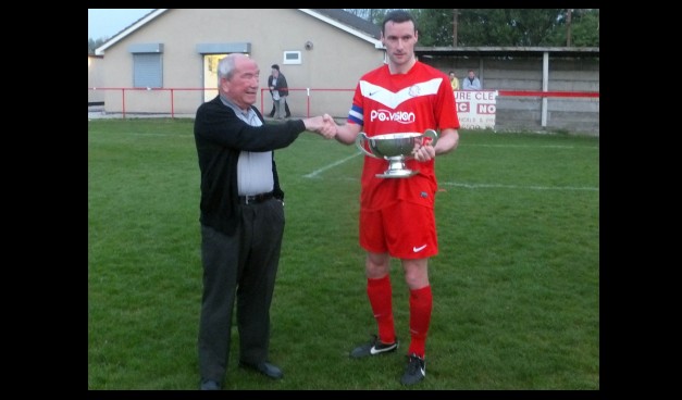 Captain Conn Methven receiving league runners up trophy.